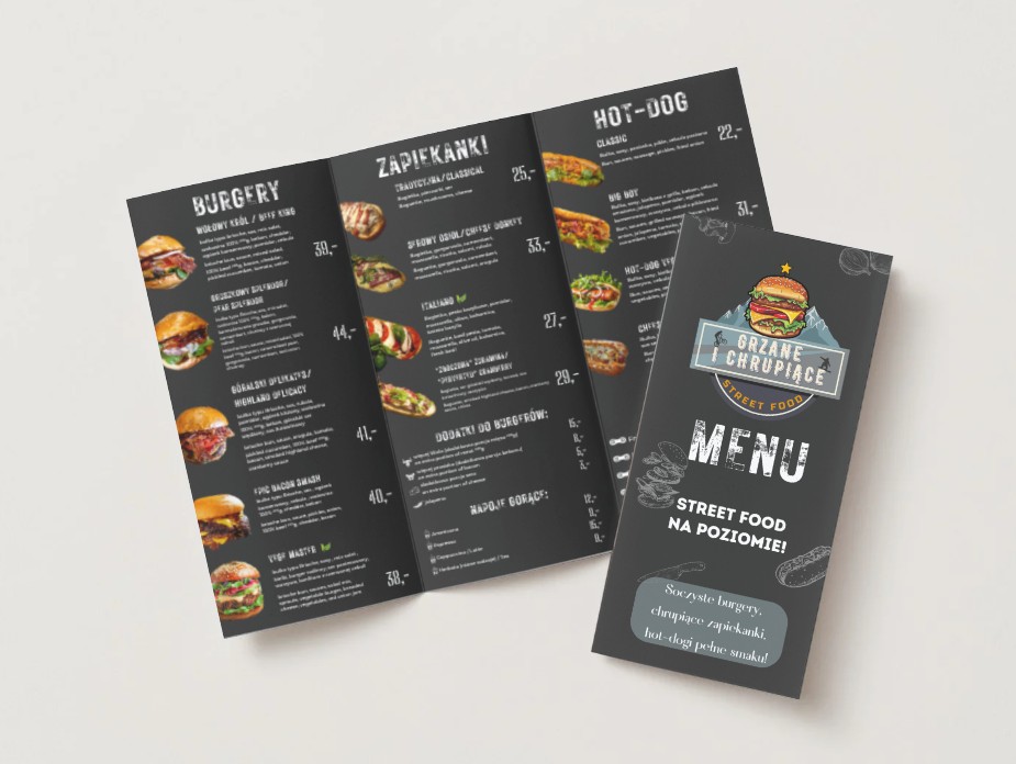 Realizacja obejmowała stworzenie identyfikacji wizualnej, logo, projekt menu oraz projekt gadżetów firmowych dla marki z branży gastronomicznej.
